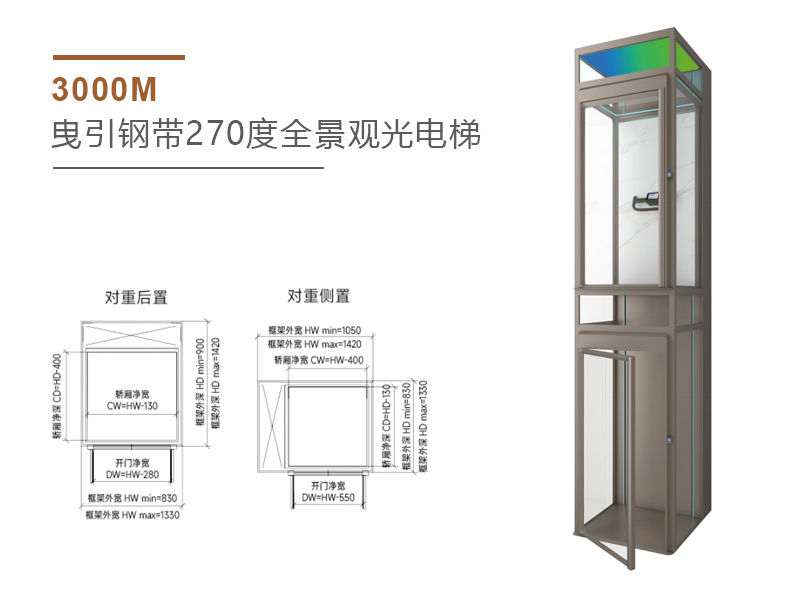 2000M 360度半圆形全景观光电梯